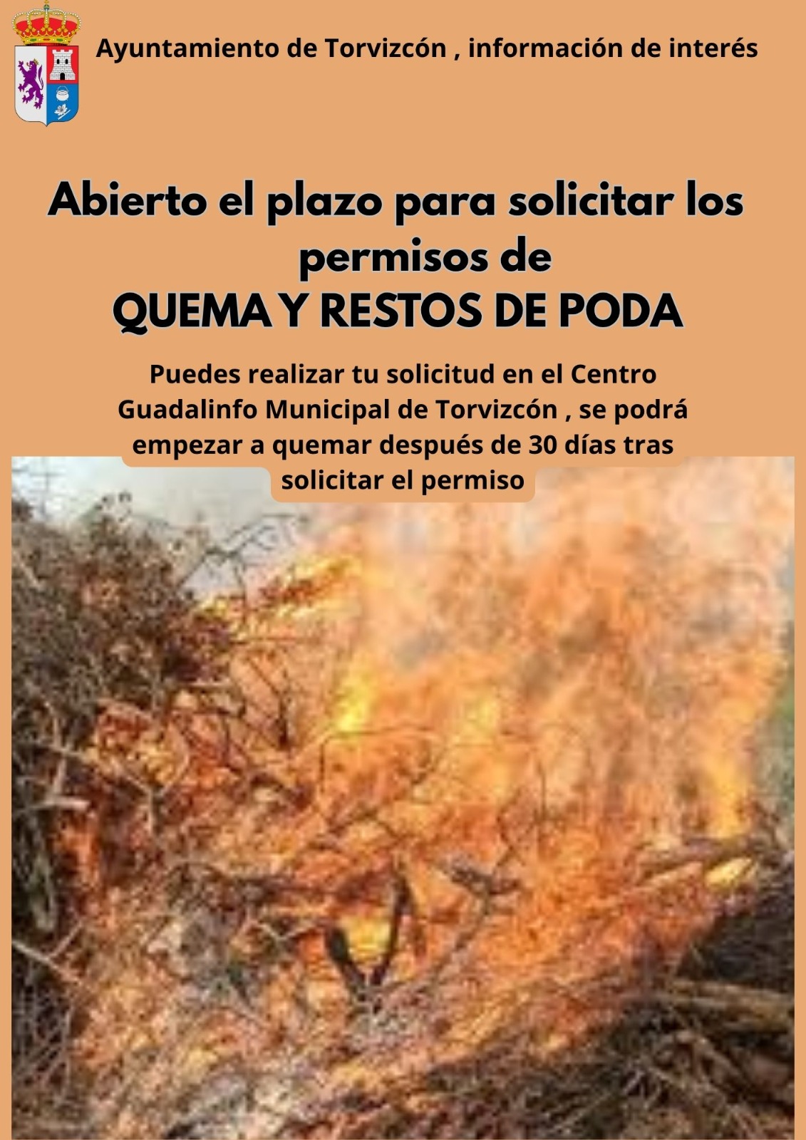 Se podrá empezar a quemar después de 30 días tras solicitar el permiso.