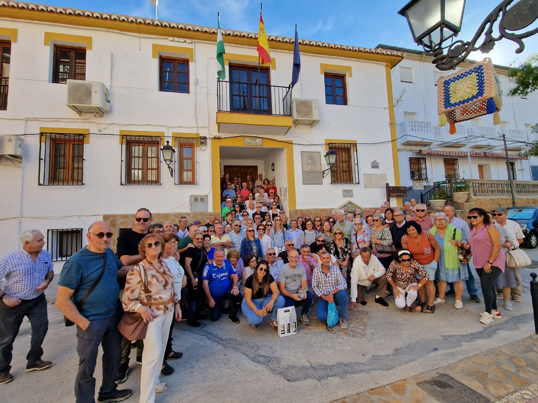 La visita se iniciaba en la Plaza del Ayuntamiento, donde Paco Oliveros, coordinador del grupo, hizo entrega de una placa al Ayuntamiento de Torvizcón. A continuación se dirigieron hacia las casitas típicas alpujarreñas construidas a escala a la entrada del municipio, para seguir hacia la escultura de la trilla, la fuente de la vendimia, la Iglesia de Nuestra Sra. del Rosario o el Museo del Esparto, finalizando en el Paseo de Juan y Medio.