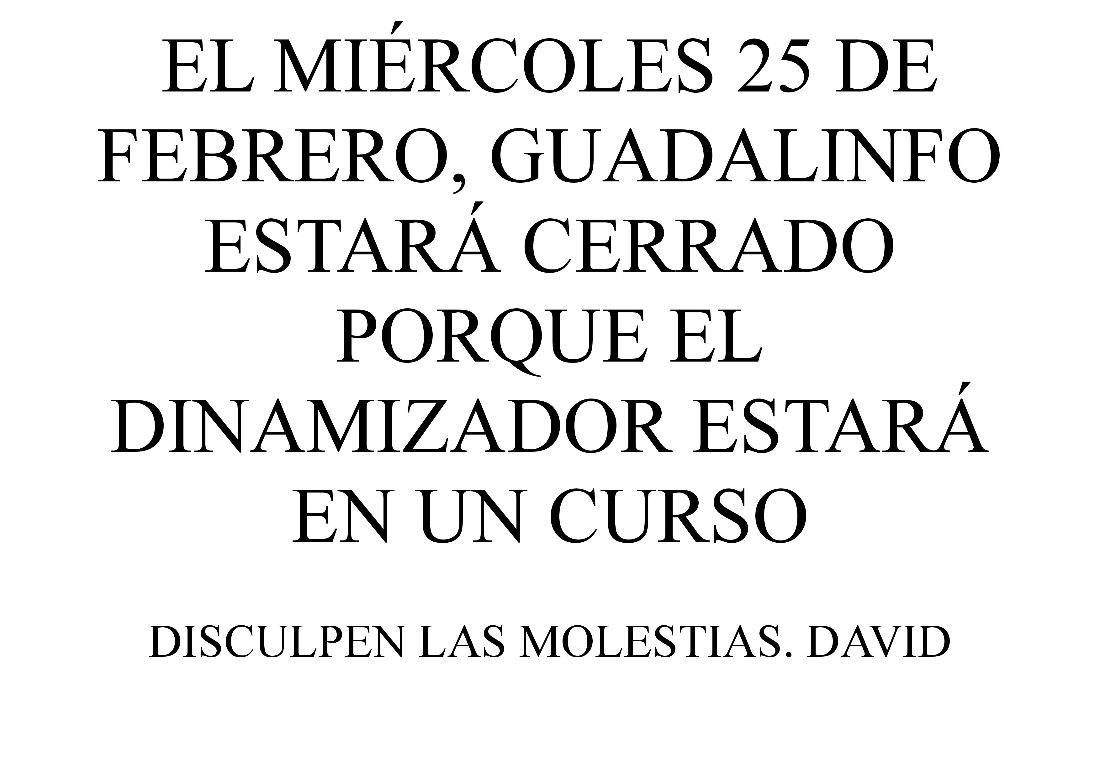 Punto Vuela Torvizcón informa: El miércoles 25 de febrero de 2026, el centro estará cerrado al tener el AIL, que acudir a un curso de formación.